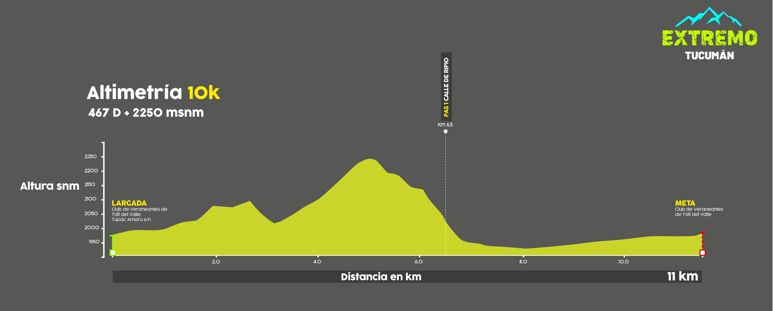 La largada es a las 10 am en el Club de Veraneantes de Tafí del Valle, Tupac Amaru s/n – 26°51´30” SUR, 65°42´26” OESTE