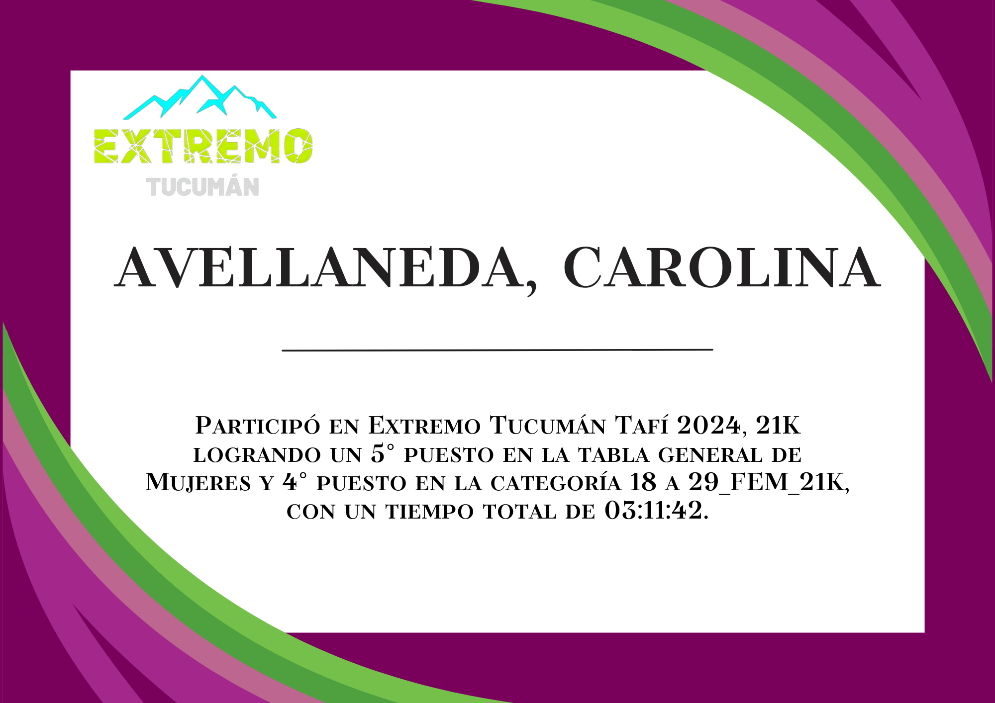 | 18 | 247 | Avellaneda, Carolina | 21K | HASTA_29_AÑOS_FEM_21K | 03:11:42 | Descargar |