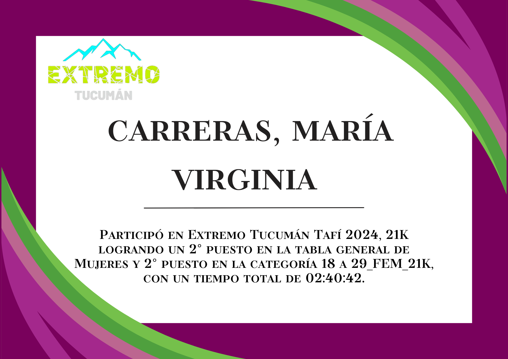 | 9 | 221 | Carreras, María Virginia | 21K | HASTA_29_AÑOS_FEM_21K | 02:40:42 | Descargar |