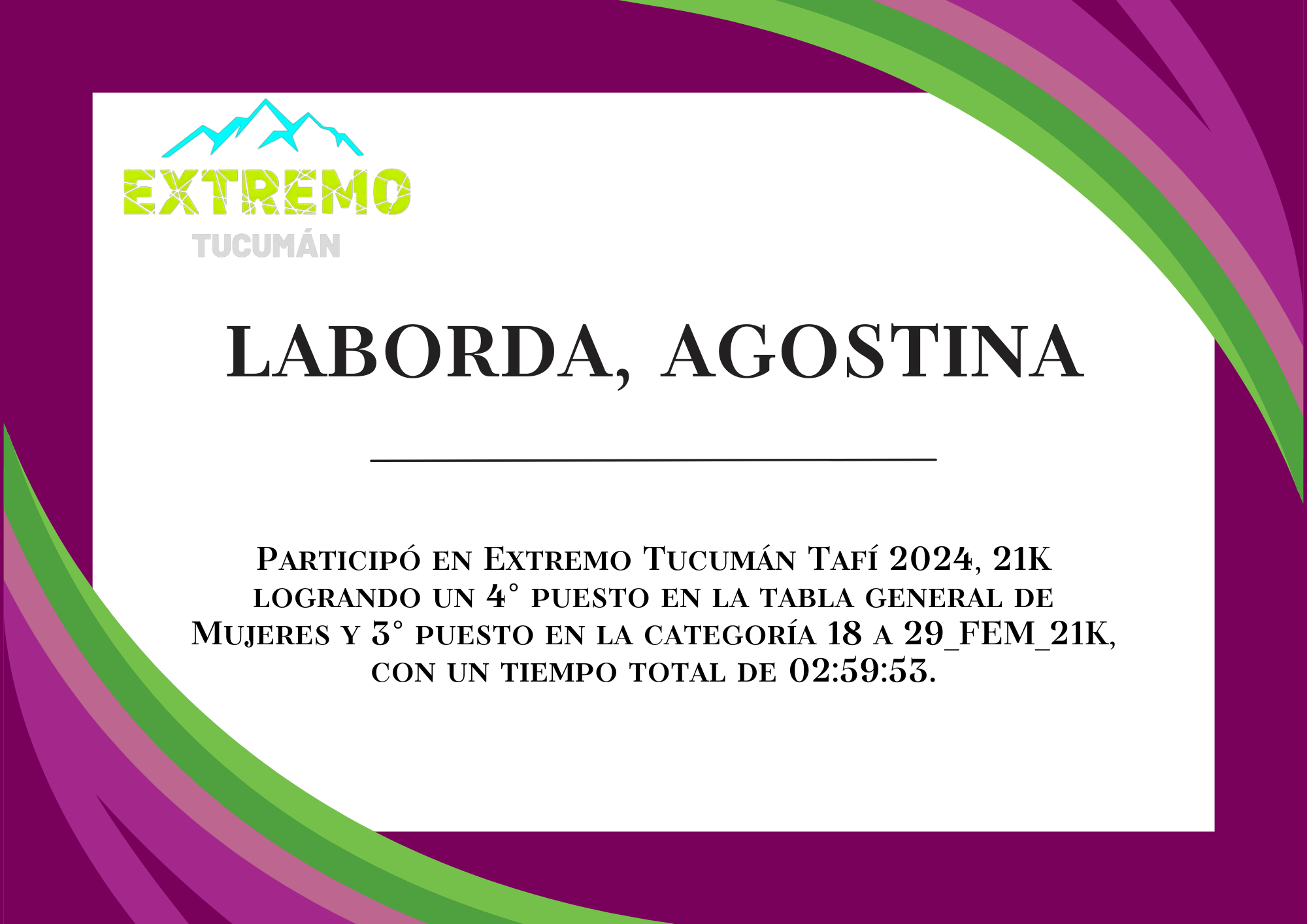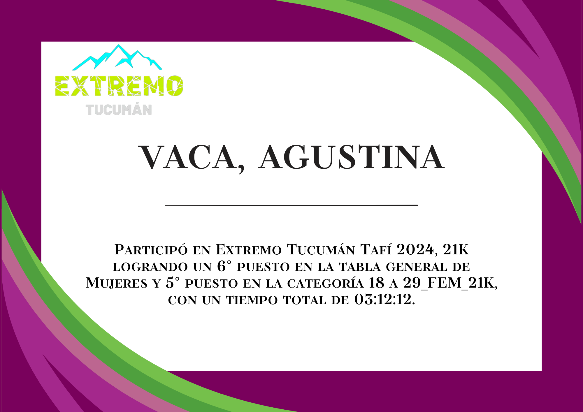 | 19 | 306 | Vaca, Agustina | 21K | HASTA_29_AÑOS_FEM_21K | 03:12:12 | Descargar |