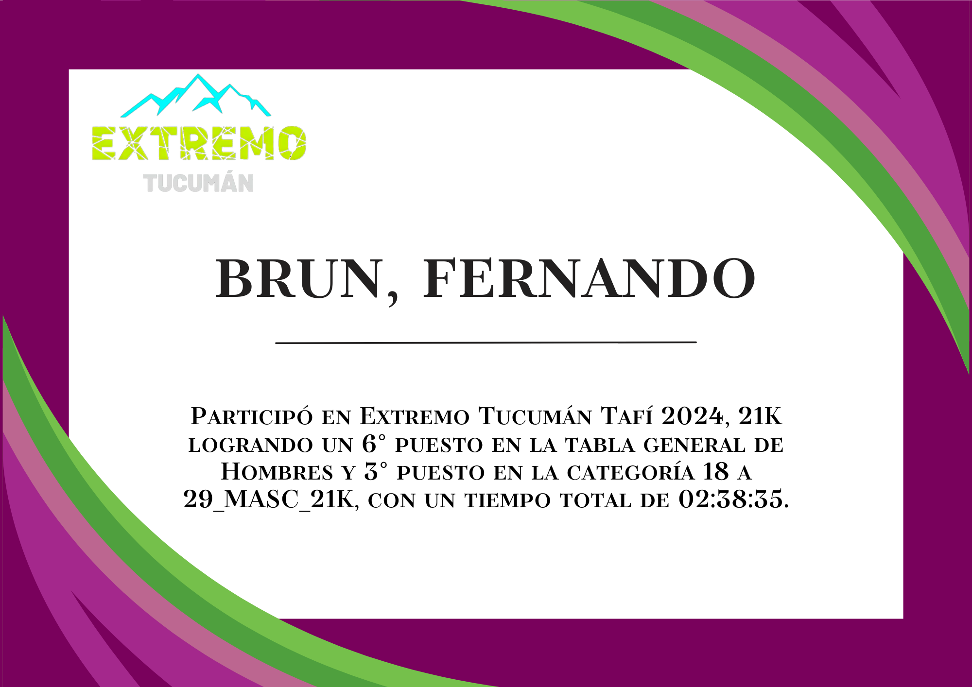 | 6 | 217 | Brun, Fernando | 21K | HASTA_29_AÑOS_MASC_21K | 02:38:35 | Descargar |