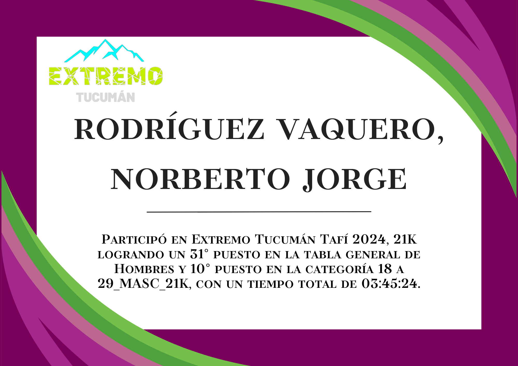 | 51 | 309 | Rodríguez Vaquero, Norberto Jorge | 21K | HASTA_29_AÑOS_MASC_21K | 03:45:24 | Descargar |