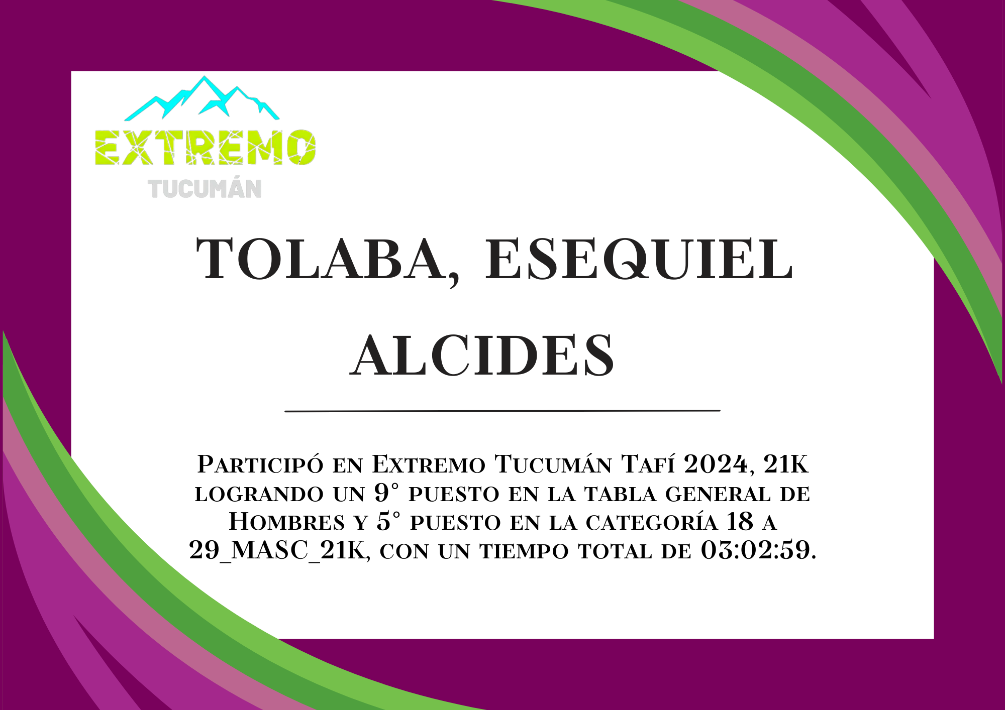 | 13 | 295 | Tolaba, Esequiel Alcides | 21K | HASTA_29_AÑOS_MASC_21K | 03:02:59 | Descargar |