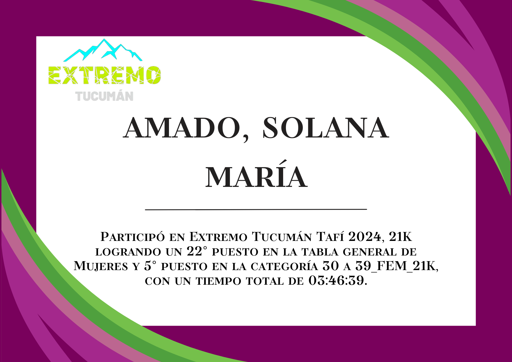 | 53 | 238 | Amado, Solana María | 21K | 30_A_39_AÑOS_FEM_21K | 03:46:39 | Descargar |