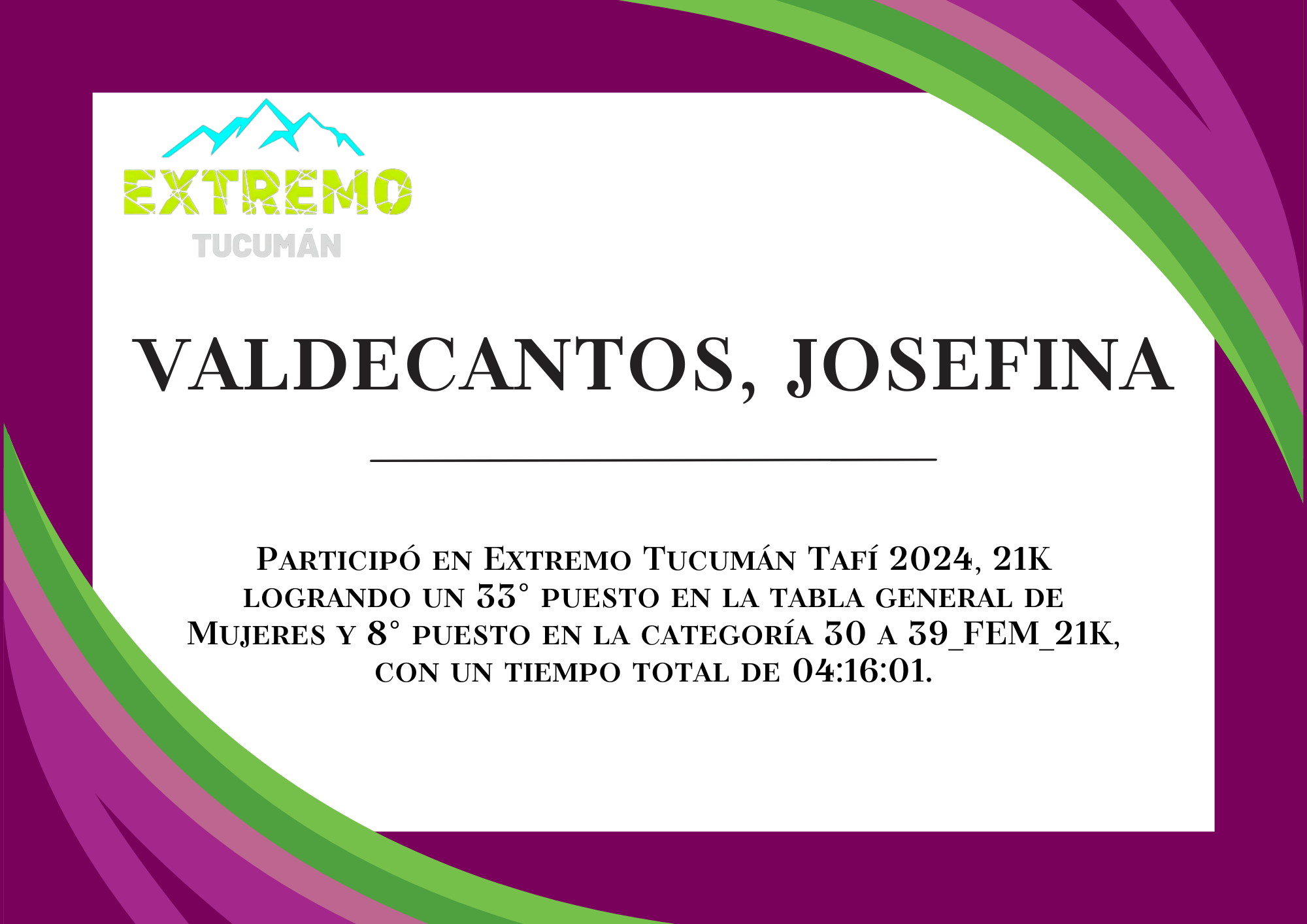 | 87 | 275 | Parra, Martina Maria | 21K | HASTA_29_AÑOS_FEM_21K | 04:30:42 | Descargar |