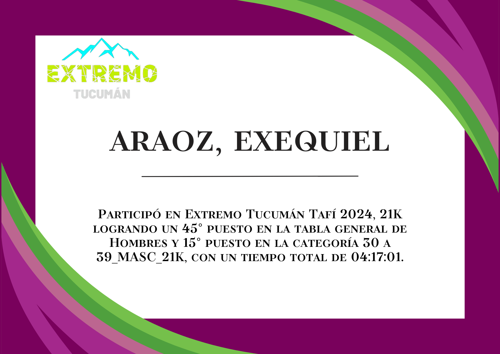 | 78 | 267 | Araoz, Exequiel | 21K | 30_A_39_AÑOS_MASC_21K | 04:17:01 | Descargar |
