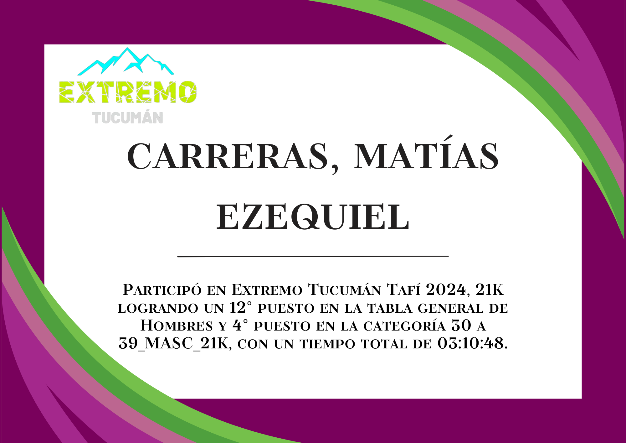 | 16 | 226 | Carreras, Matías Ezequiel | 21K | 30_A_39_AÑOS_MASC_21K | 03:10:48 | Descargar |