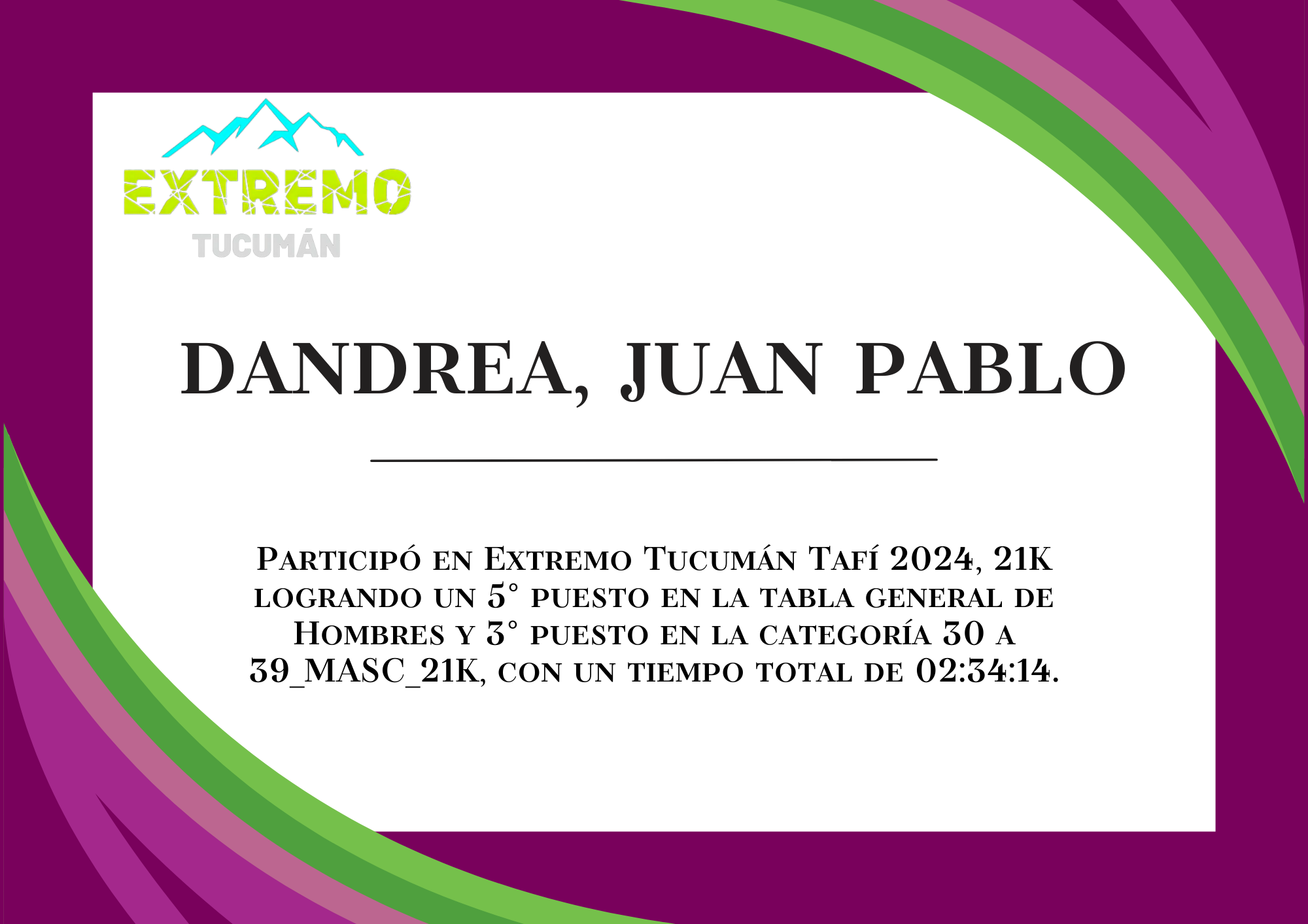 | 5 | 257 | Dandrea, Juan Pablo | 21K | 30_A_39_AÑOS_MASC_21K | 02:34:14 | Descargar |