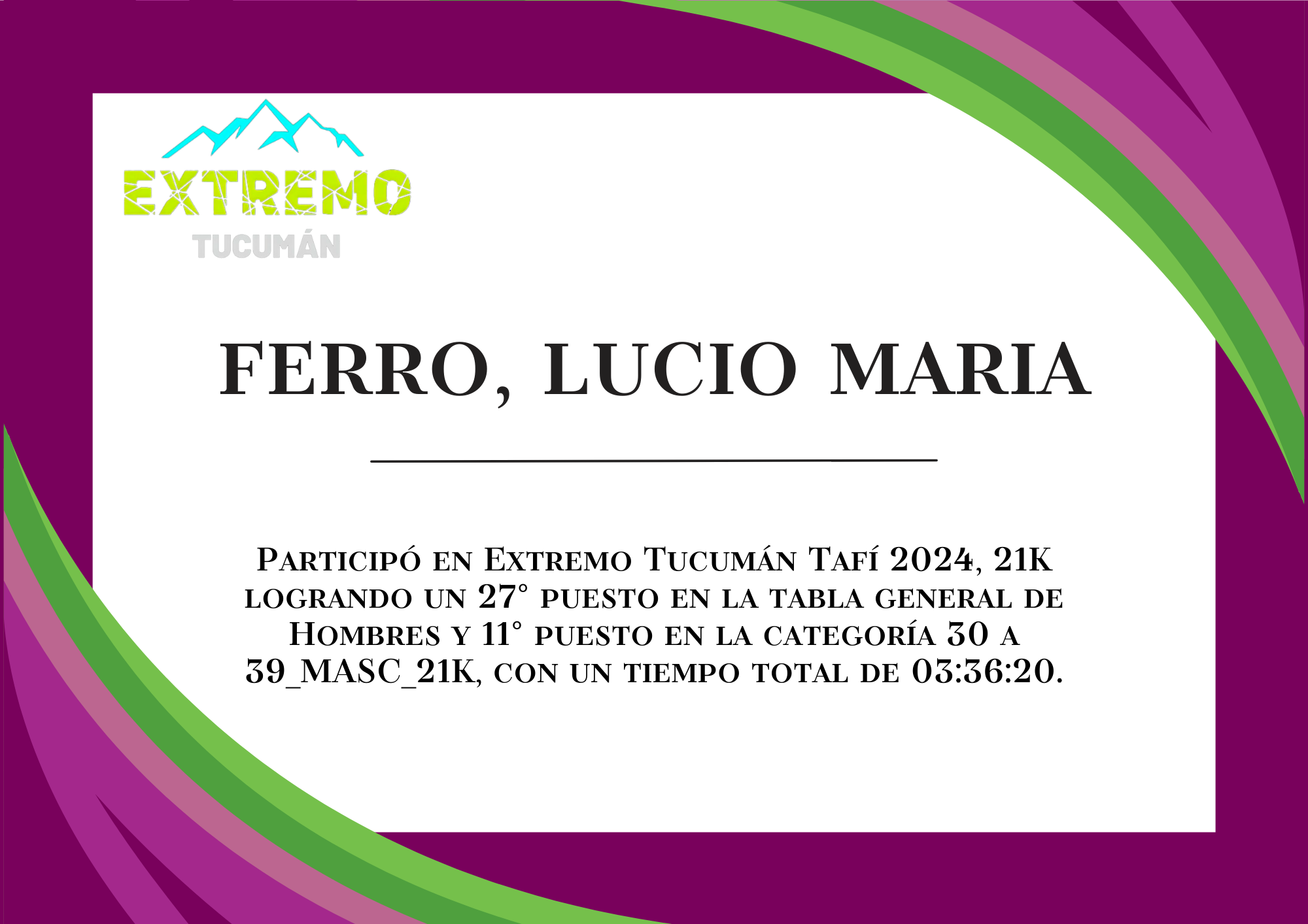 | 42 | 242 | Ferro, Lucio Maria | 21K | 30_A_39_AÑOS_MASC_21K | 03:36:20 | Descargar |