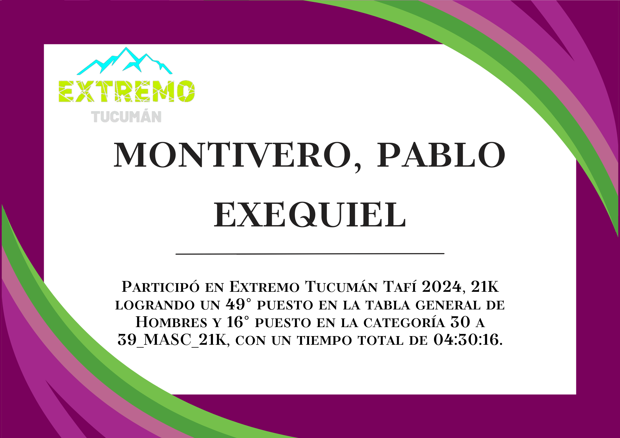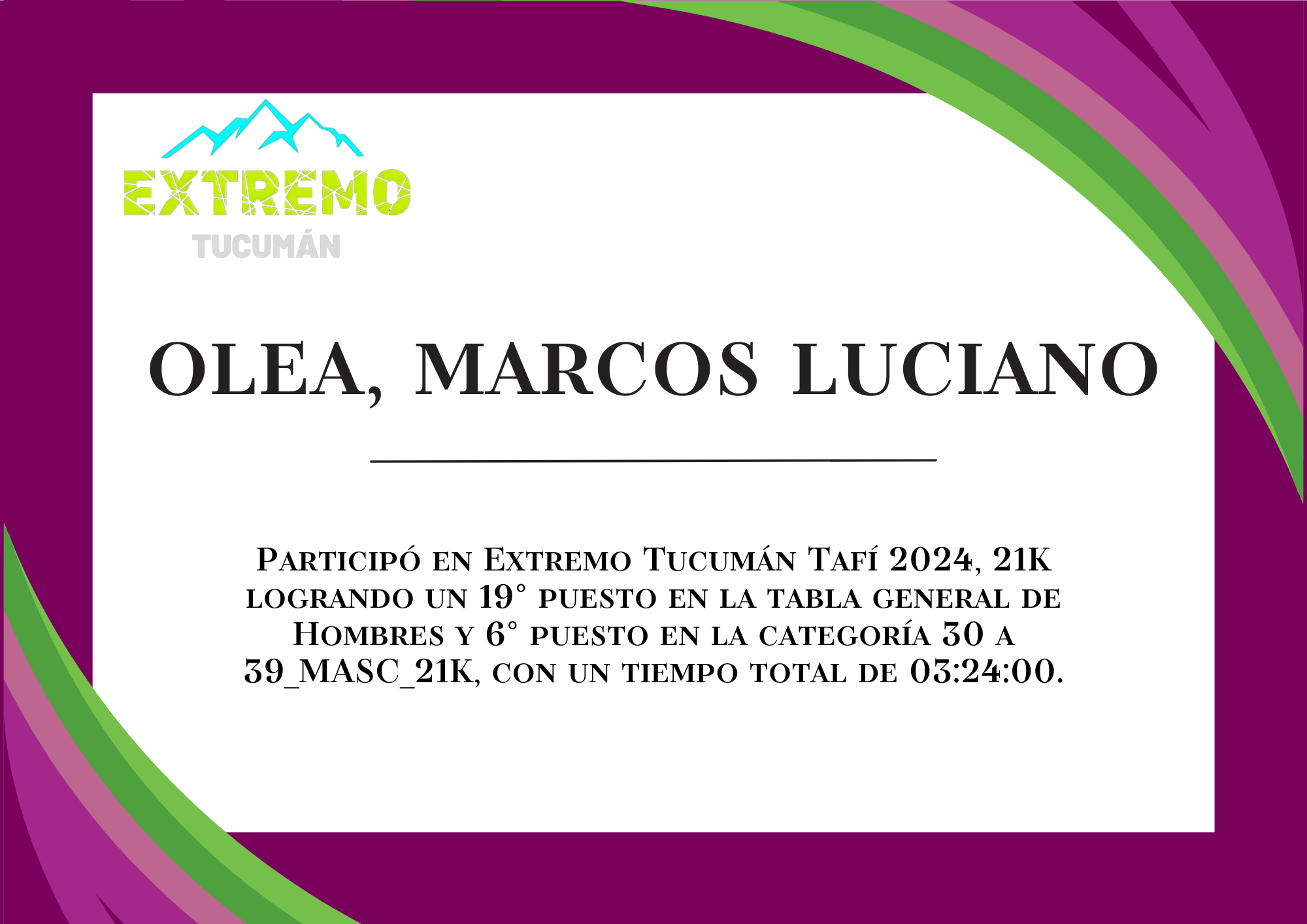 | 30 | 223 | Olea, Marcos Luciano | 21K | 30_A_39_AÑOS_MASC_21K | 03:24:00 | Descargar |