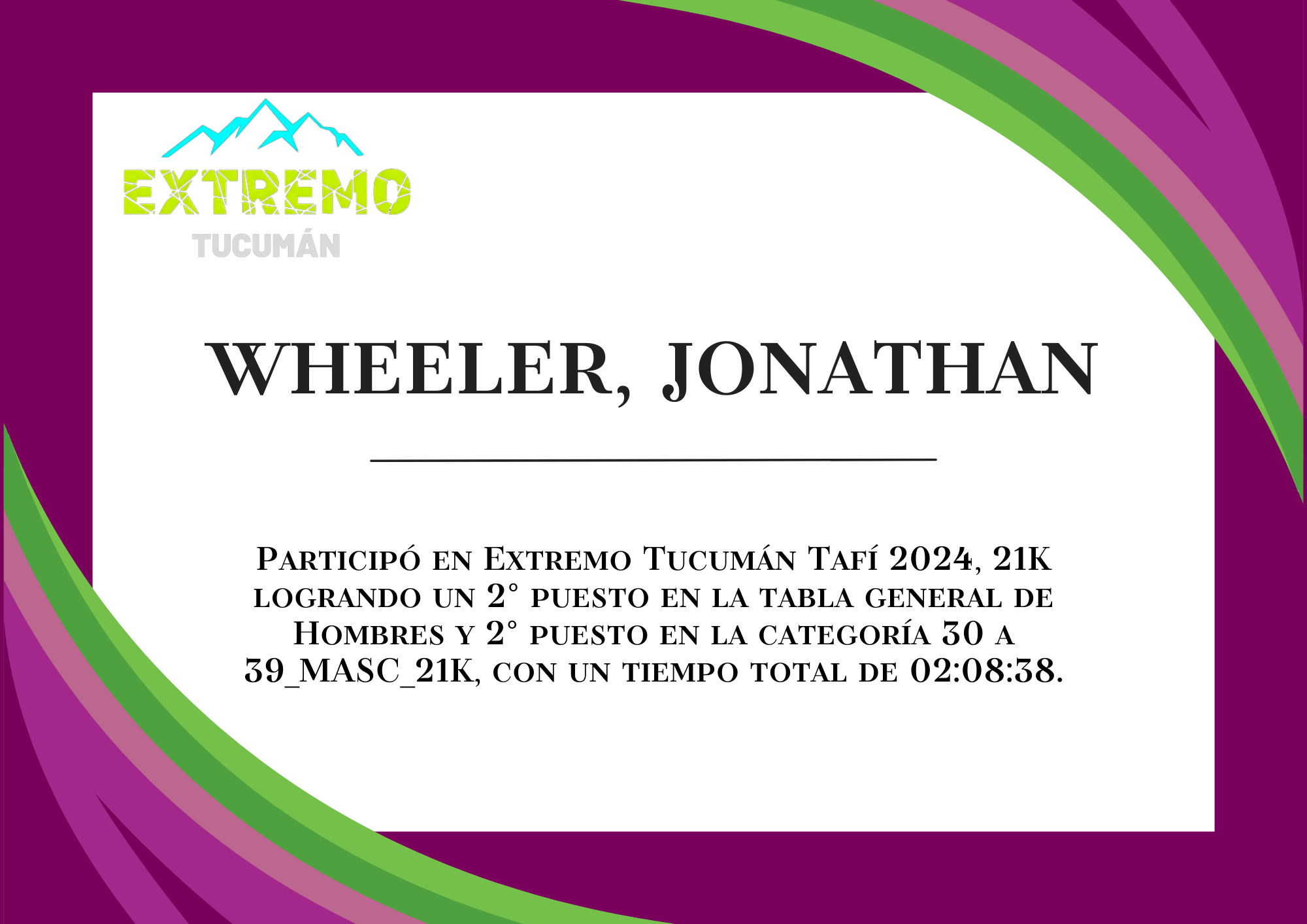 | 2 | 220 | Wheeler, Jonathan | 21K | 30_A_39_AÑOS_MASC_21K | 02:08:38 | Descargar |