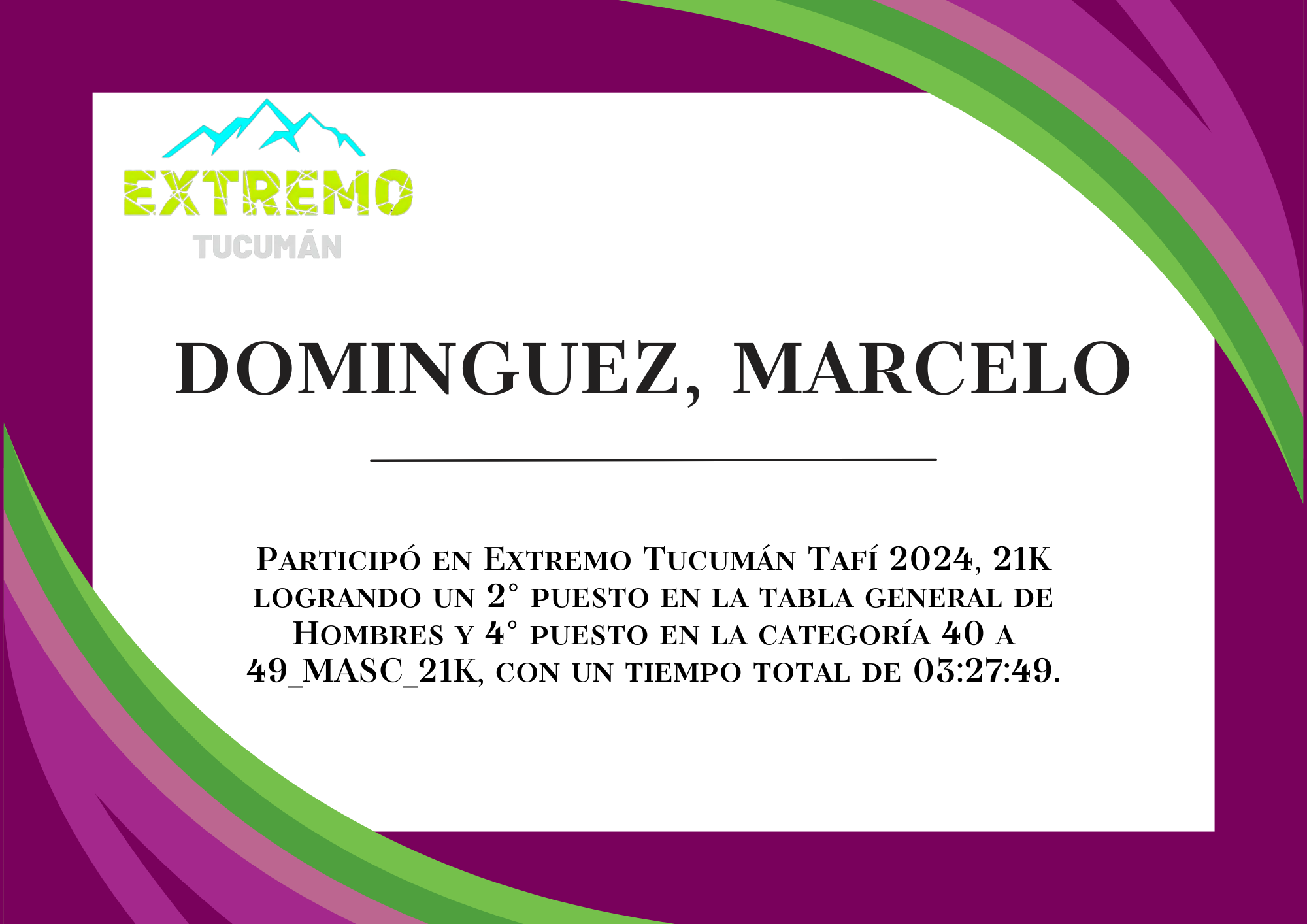| 34 | 310 | Dominguez, Marcelo | 21K | 40_A_49_AÑOS_MASC_21K | 03:27:49 | Descargar |