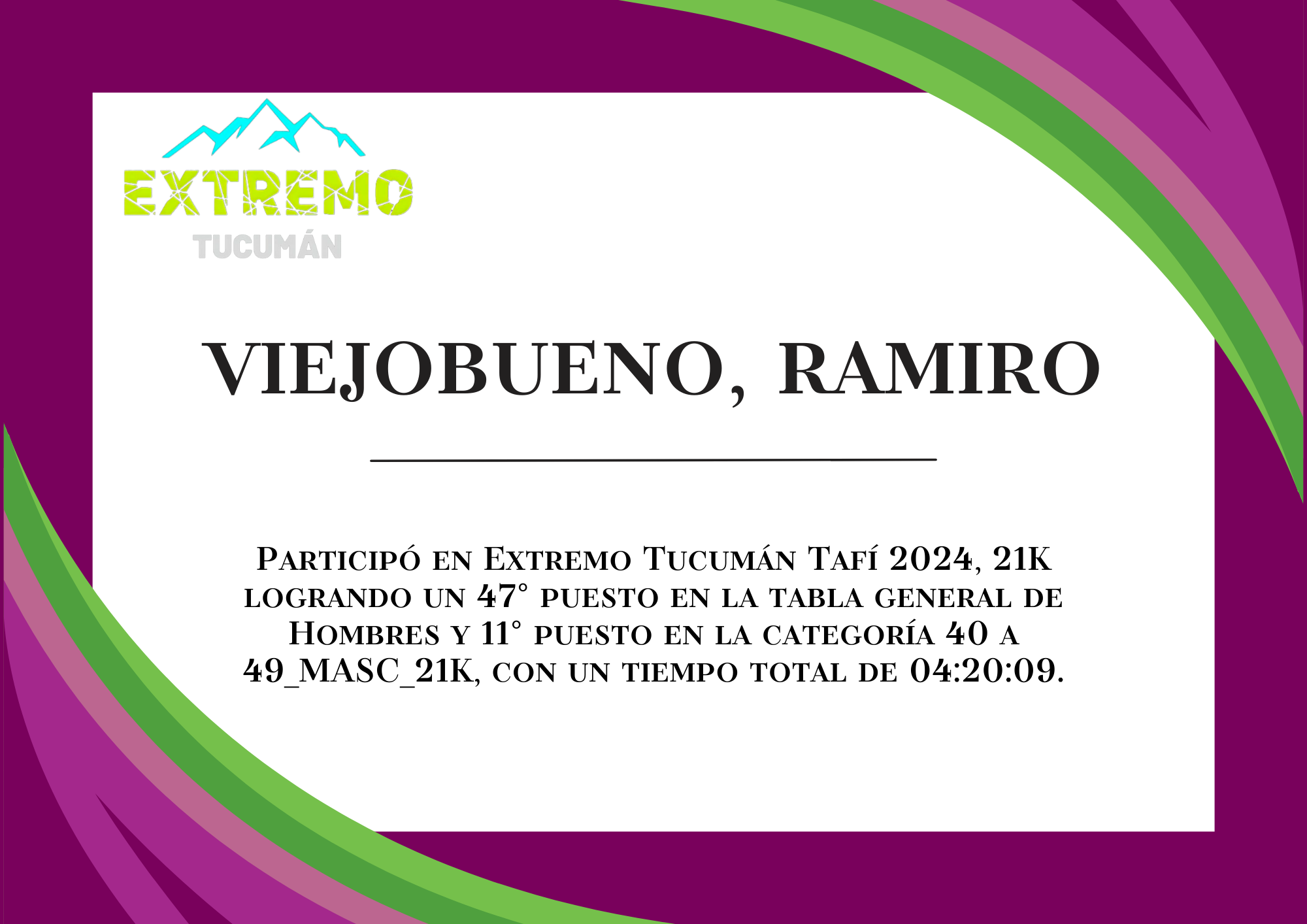 | 81 | 321 | Viejobueno, Ramiro | 21K | 40_A_49_AÑOS_MASC_21K | 04:20:09 | Descargar |