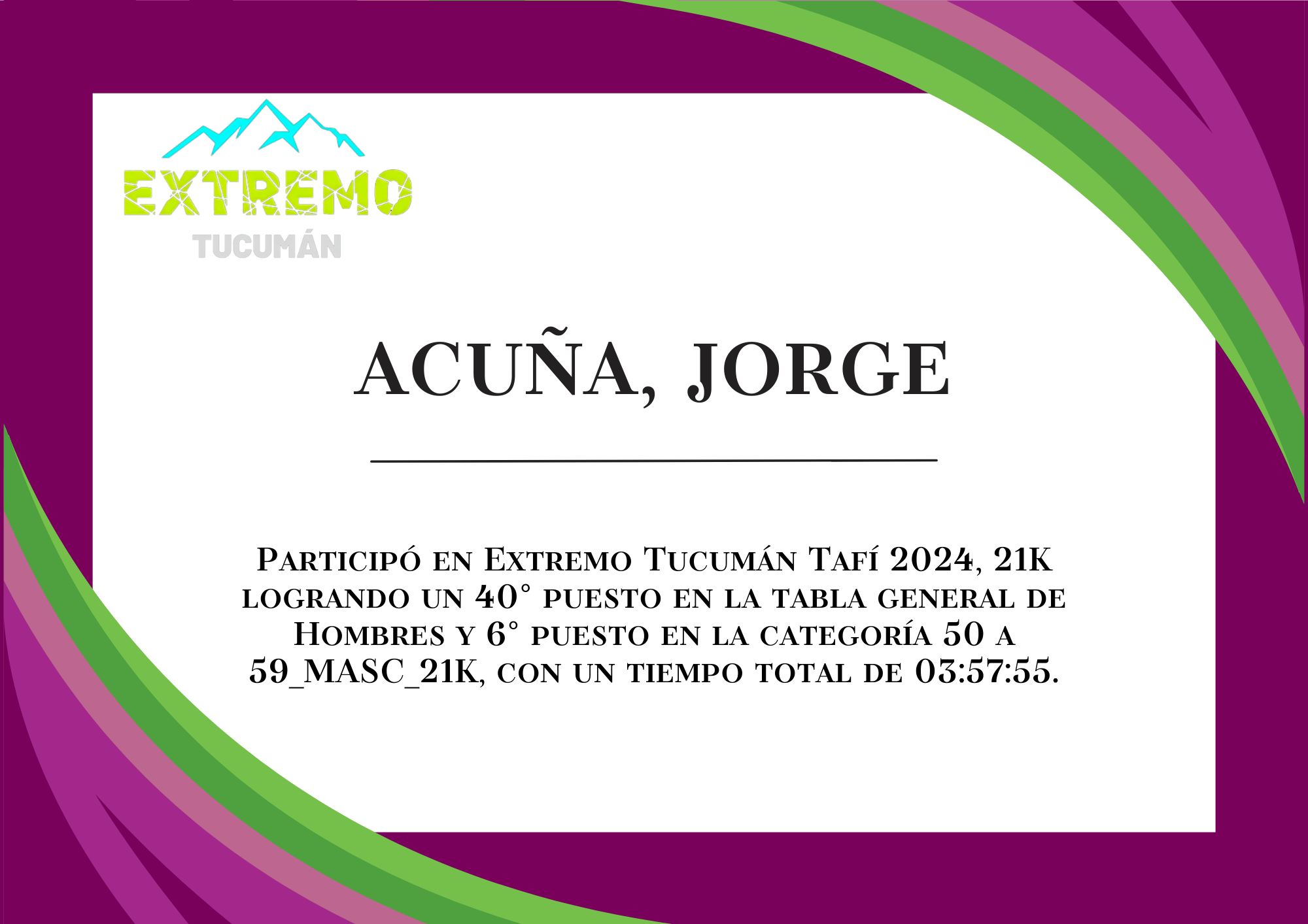 | 65 | 316 | Acuña, Jorge | 21K | 50_A_59_AÑOS_MASC_21K | 03:57:55 | Descargar |