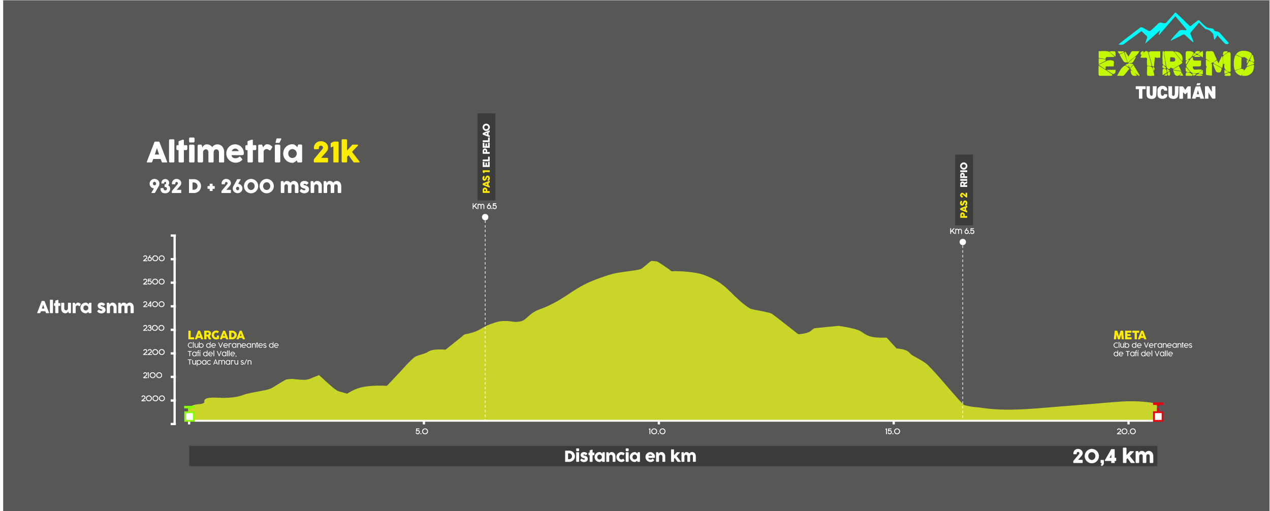 La largada es a las 10 am en el Club de Veraneantes de Tafí del Valle, Tupac Amaru s/n – 26°51´30” SUR, 65°42´26” OESTE.
